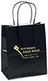 Small Coloured Gloss Paper Bags Twisted Paper Handles feature an imprint area sized 12.5cms wide by 10cms high ideal for showcasing your foil hot stamped elegant retail logo in a metallic finish. These personalised shopper bags are available to order in a choice of four colours and are designed with a kraft paper twisted handle and glossy paper with a serrated cut top.