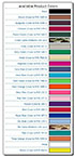 We have a limited range of standard print colours for this product. Athletic Gold/PMS 123C, Black, Brown/PMS 168C, Burgundy/PMS 209C, Dark Grey/PMS 429U, Deacon Blue/PMS 286U, Forest Green/PMS 3425C, Ivory/PMS 7506U, Kelly Green/PMS 355U, Khaki/PMS 7500U, Light Pink/PMS 203U, Light Purple/PMS 2577U, Metallic Gold/PMS 875C, Metallic Silver/PMS 877C, Navy Blue/PMS 295U, Neon Green/PMS 374U, Neon Pink/PMS 806U, Neon Yellow/PMS Yellow U, Old Gold/PMS 124U, Orange/PMS Orange 021U, Pink/PMS 212C, Purple/PMS 268C, Red/PMS 186U, Royal Blue/PMS 294C, Super Bright Blue/PMS 2995U, Teal/PMS 319U, White.